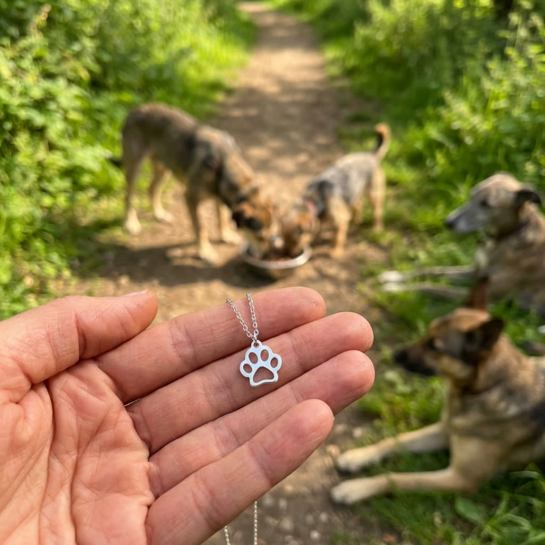 Each necklace helps us provide 10 meals to abandoned dogs.